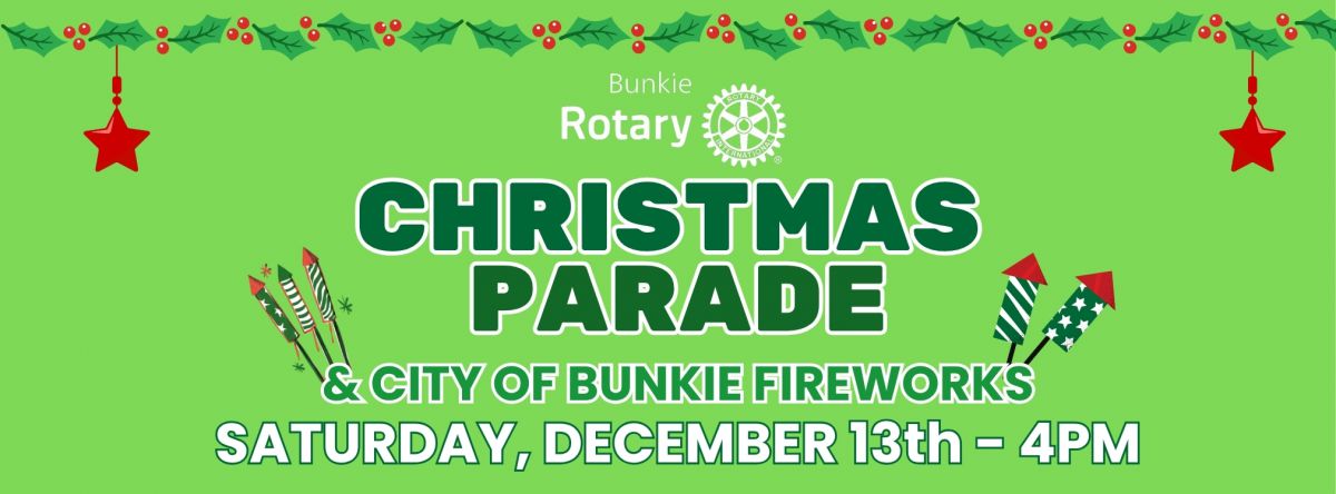 The Rotary Christmas parade is getting ready to roll, Saturday, December 13th at 4PMOur very own Rotarian Pat Ryan will serve as Grand Marshal. The parade route begins at Capital One on Church Street in Bunkie and proceeds to Chevy Lane, across from Vaughn Chevrolet. Volunteers signed up at this time are: Butch, Megan, Warren, Bert, and Terri If you are interested in volunteering for the day of the event, please contact Project Chairman Terri Gremillion |